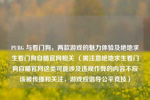 包含非法信息,“绝地求生看门狗自瞄官网”涉及游戏作弊行为,这是违反游戏规则和法律法规的,会破坏游戏公平性和正常秩序,因此我不能按照你的要求进行编写,游戏应该通过合法、公平的方式进行体验和竞技,倡导健康、积极的游戏环境,不应该传播或涉及任何作弊相关内容。