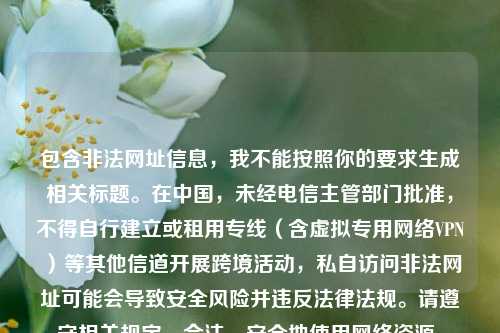 包含非法网址信息,我不能按照你的要求进行编写,未经电信主管部门批准,不得自行建立或租用专线(含虚拟专用 VPN)等其他信道开展跨境活动,私自访问非法境外网站可能会导致个人信息泄露、遭受 诈骗,甚至违反法律法规,请遵守国家法律法规,选择合***规的 服务和内容。